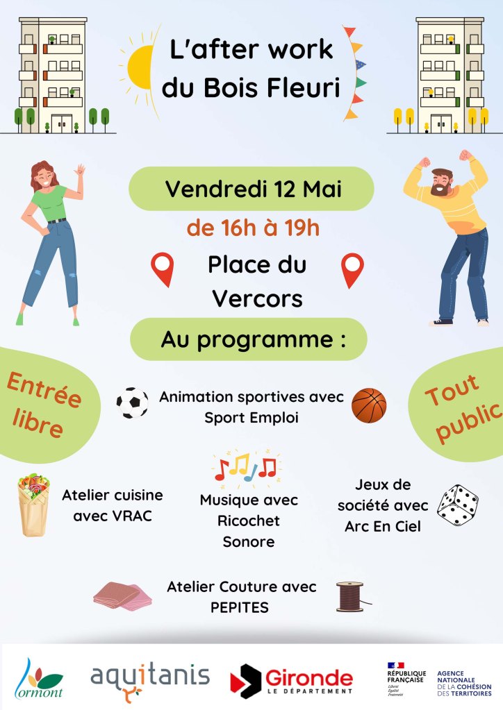 Les associations qui animent le bois fleuri vous attendent ce vendredi 12/05, 16h-19h Place Vercors : Au programme Sport, Cuisine, Couture, musique et Jeux de société avec Ricochet Sonore, Pépite, l’Info Jeune Mobile et Vrac.