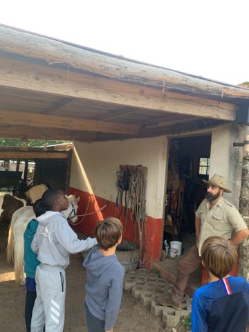Sur notre deuxième journée Agathe, Ambre, Adja et Yzeir sont partis faire du poney. Bien que les poneys étaient têtus nous avons su rester calme et contrôler la situation.
