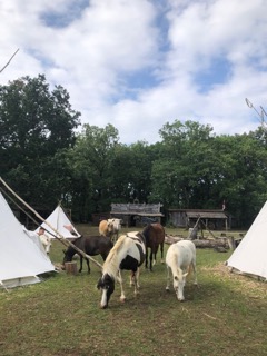 « Quand on est arrivé nous avons été accueilli par les chevaux en liberté autour de nos tipis. « J’ai bien aimé que les cheveux et les chiens soient en liberté » (Henry).