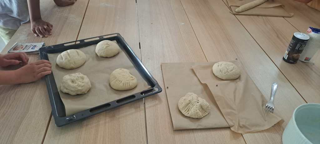 Après le repas, nous avons fabriqué du pain et c’était super d’apprendre comment faire du pain, et en plus il n’y avait que 3 ingrédients.