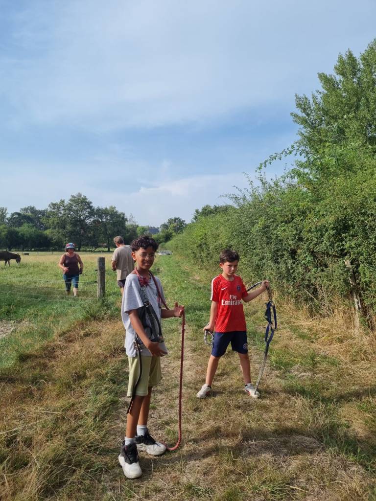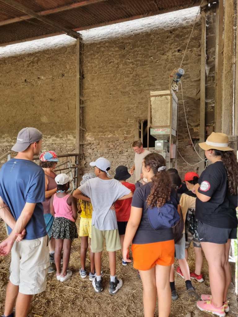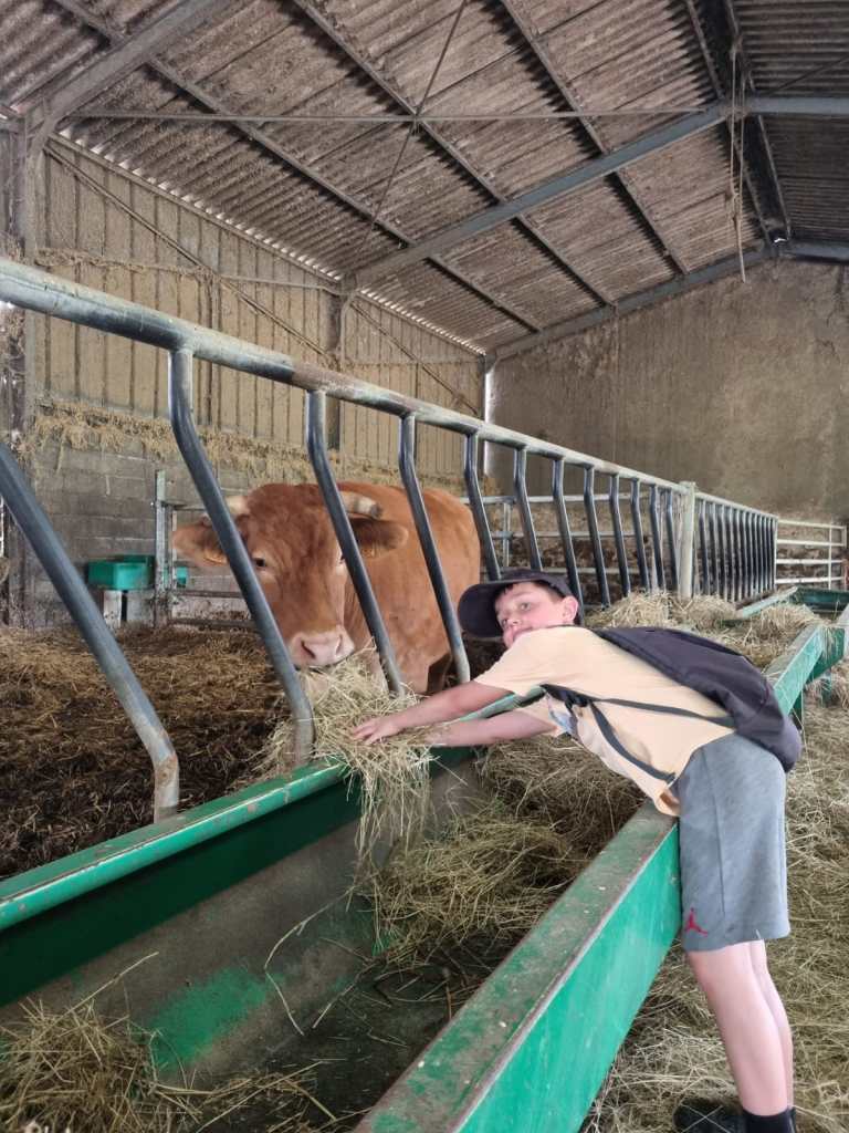 Et après nous sommes allés à la ferme pour découvrir les vaches et on a fait un jeu avec des grains de farine. Et ils nous ont montré le taureau qui ressemblait à une vache.