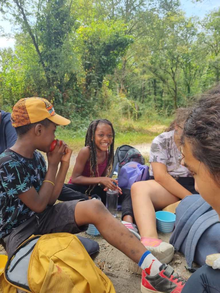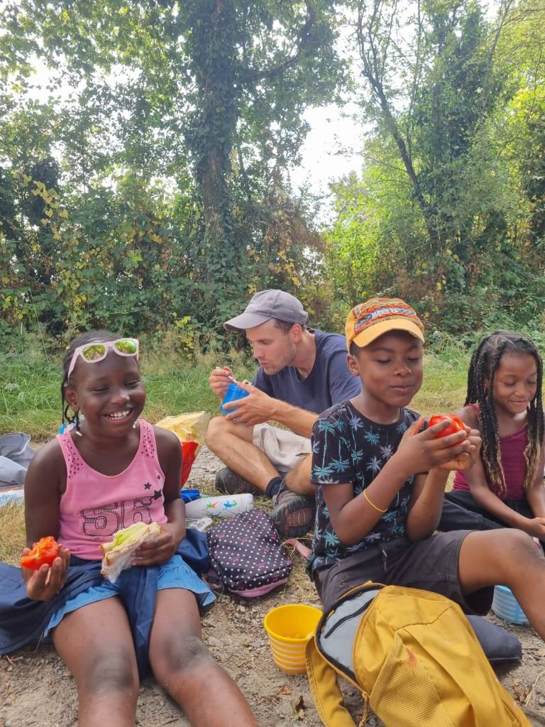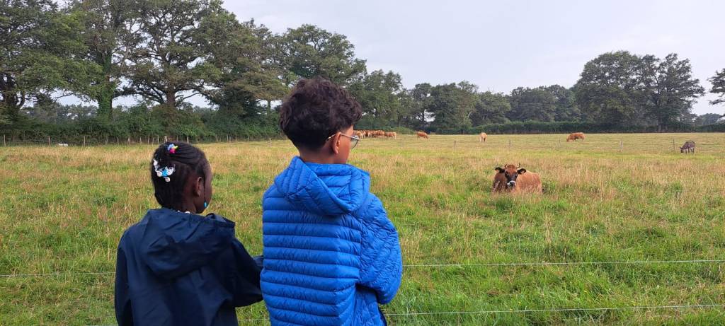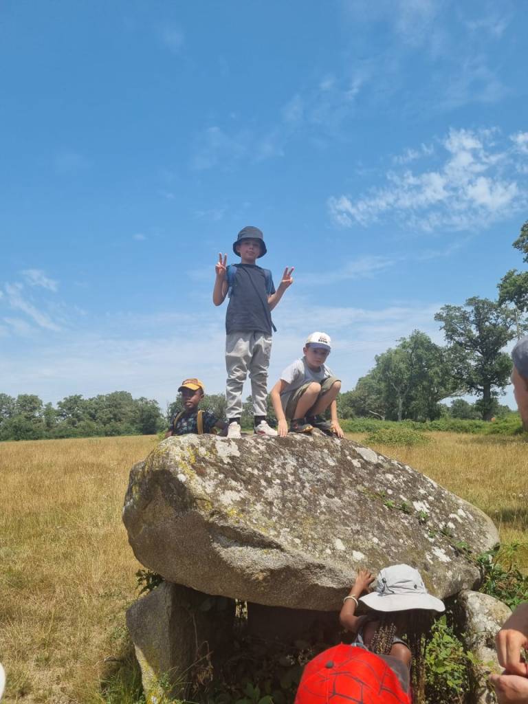 On est allés dans le jardin de quelqu’un pour voir un dolmen. Après on est repartie à la ferme, on était content d’y retourner.